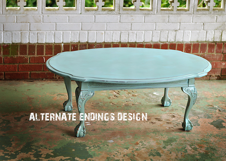 | vintage sewing table w/ dove gray base and chillin' blue topcoat... |